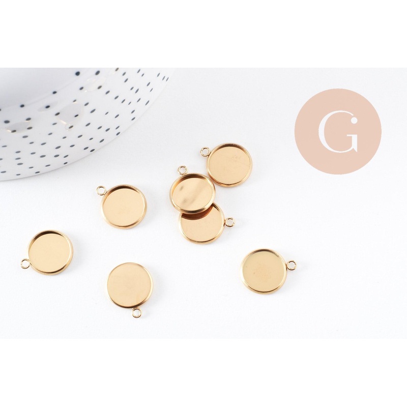 Round pendant with gold-plated stainless steel cabochon holder, 12mm, x2 (G10195)