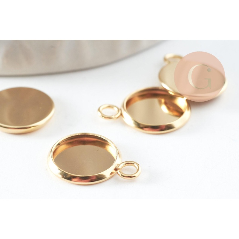 Round pendant with gold stainless steel cabochon support, gold steel jewelry creations, 10mm cabochon set of 10 To create your personalized pendants from resin or round stone cabochon, use these nickel-free gold-plated brass supports. Dimensions about 15mm