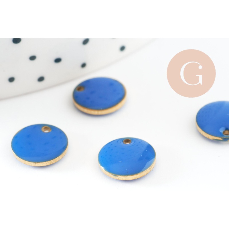 Round raw brass pendant blue enamel, gold-plated brass, round sequin pendant, 10mm, x10 G8044