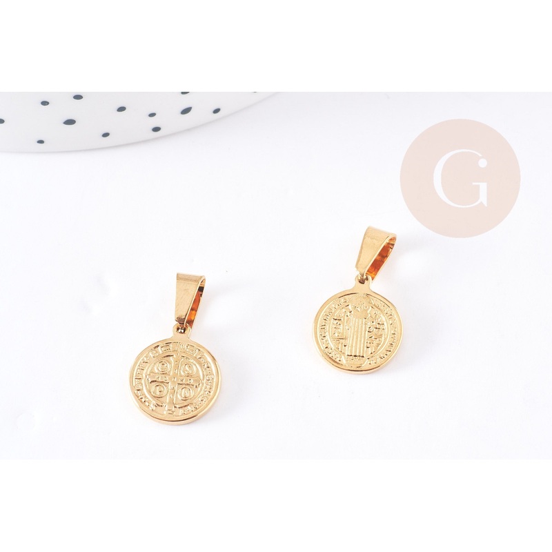 Round Saint Benedict medal pendant in gold-plated steel, gold-plated pendant, nickel-free, gold-plated steel, religious medal, gold medal, 15mm