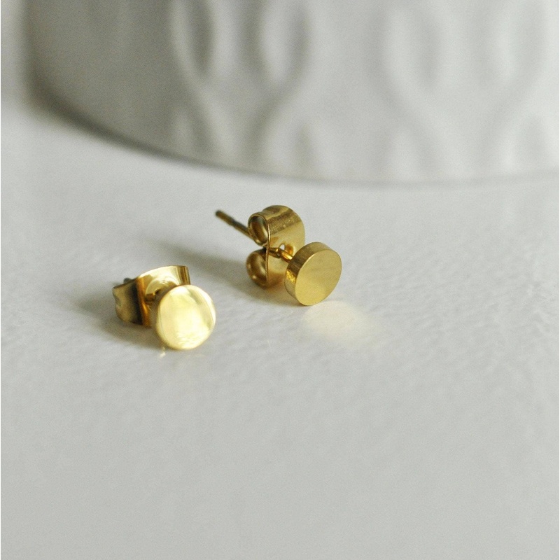 These round stud earrings in gold-plated 304 stainless steel , with a diameter of 5mm, are the very essence of minimalist and water-resistant jewelry.