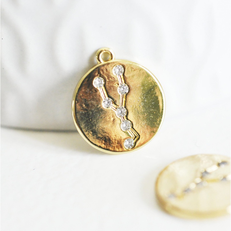 Round Taurus medal pendant in 18K gold-plated brass, a nickel-free gold-plated astrological pendant, 16mm, each