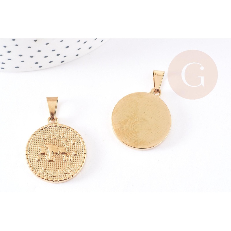 Round Taurus medal pendant in gold-plated steel, astrological sign, gold pendant, nickel-free, gold-plated steel, gold medal, 2.9cm, x1 G0106