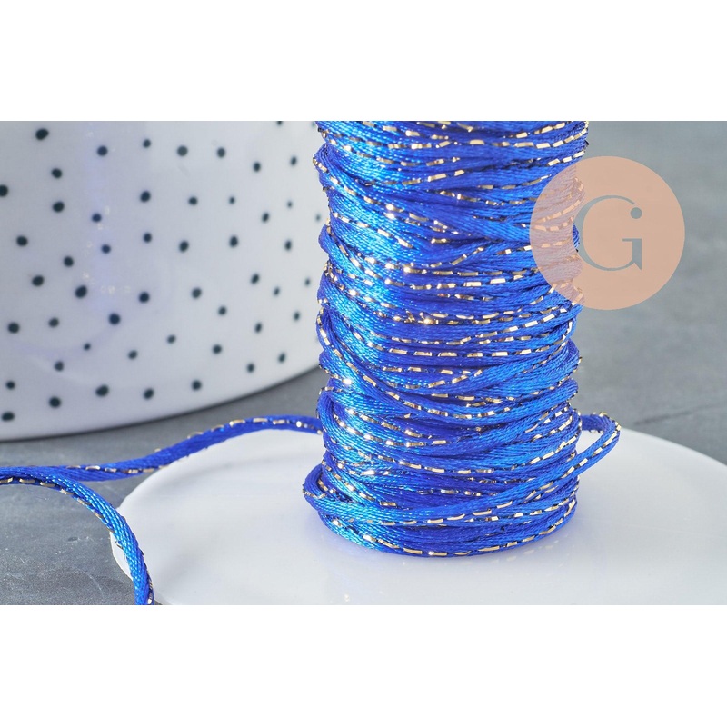 Royal blue gold cord, jewelry making, jewelry creation, wedding ribbon, scrapbooking, width 1.5mm, x1 meter G3260