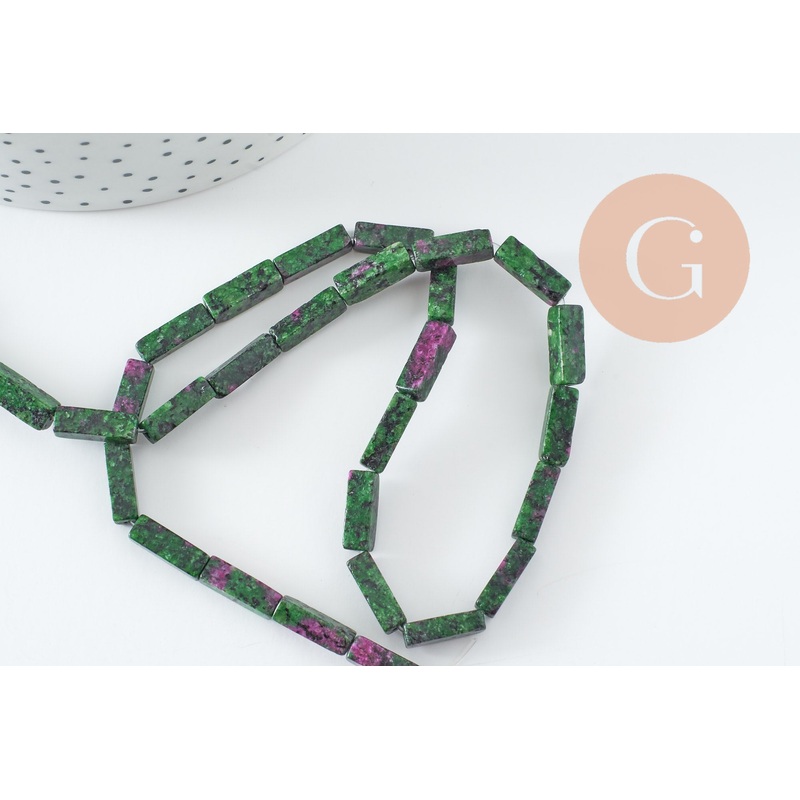 Ruby zoisite rectangle bead, zoisite bead, natural stone, natural zoisite, stone bead, 13mm, strand of 29 beads A strand of approximately 29 (40cm) rectangular ruby beads on natural zoisite Length 13-14mm Width 4-5mm Hole: 1mm Other jade, agate and natural