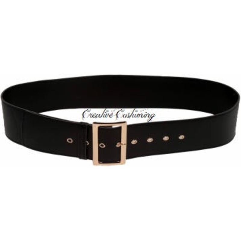 Deluxe bound black vinylbelt with large gold gilt buckle, prong, eyelets &belt loop.