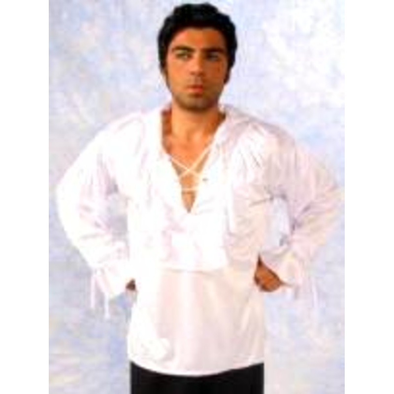A26422Satin-like shirt w/ ruffles at cuffs and neckline.Tie closure at cuff.Color: White, Black, RedSize: One Size (40-44)