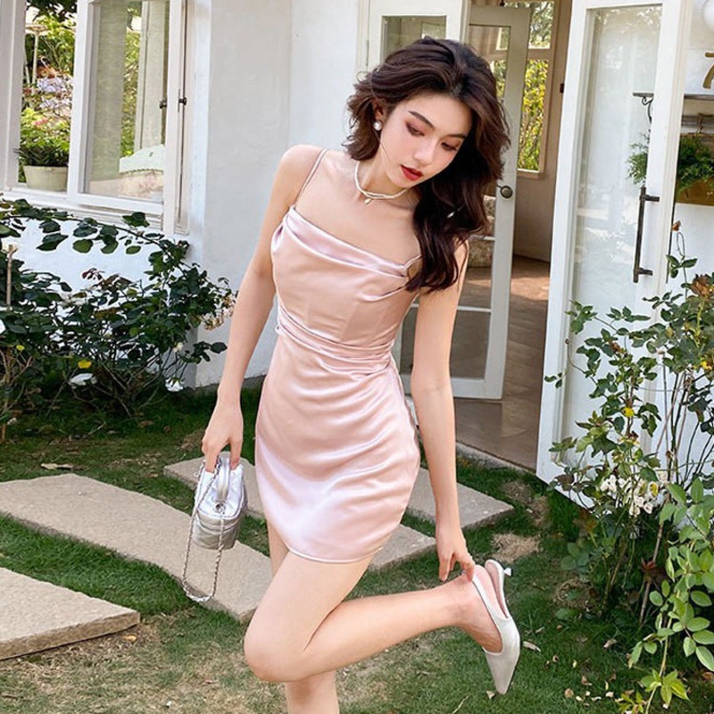 Product NO. :1076Color: champagne, pinkWaist type: high waistSize:S,M,L,XLSkirt length: short skirtSleeve: SleevelessSize details(cm):SBust83Waist66Full length57 Hip 90MBust87Waist70Full length58 Hip 94LBust91 Waist74Full length59 Hip 98XLBust95 Waist78Ful