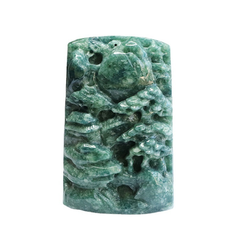 Introducing the exquisite Blue Green Carving Landscape Jade Pendant from Planderful's Fortune's Favor Collection. Crafted with precision and elegance, this pendant is a true masterpiece that captures the essence of nature. Product Specifications: Brand: Pl