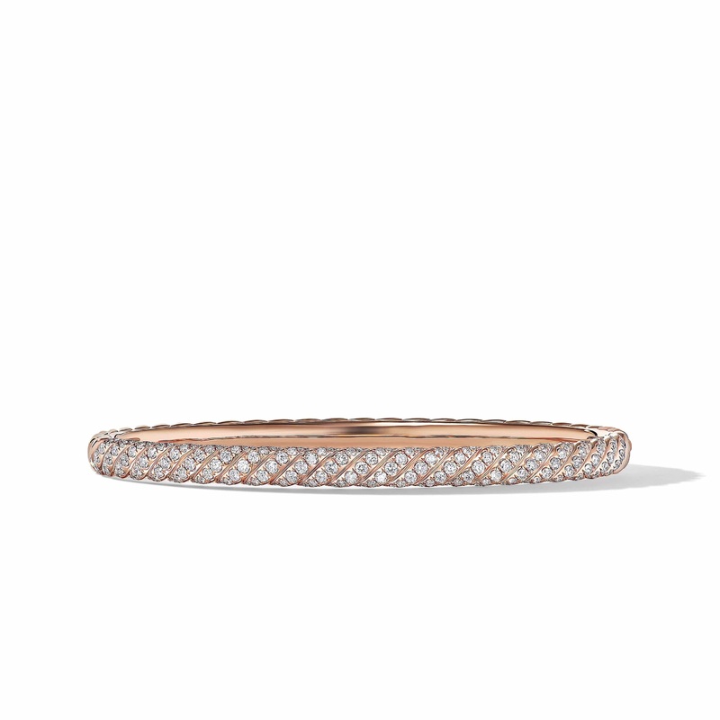 Sculpted Cable Bangle Bracelet in 18K Rose Gold with Diamonds, 4.6mm