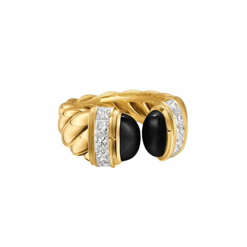 Sculpted Cable Open Cocktail Ring 18K Yellow Gold with Black Onyx and Diamonds, 12.4mm