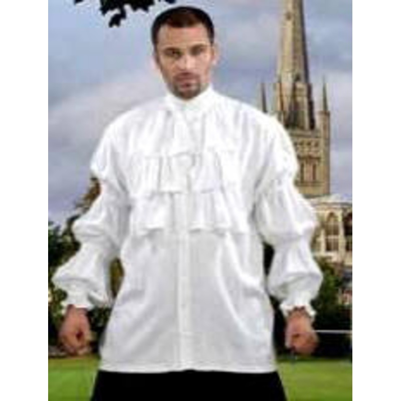 PDC1076 Great for Cavalier, Pirate, Renaissance or PrinceIncludes: Front has beautiful hanging frills whereas the sleeves have elasticized look.Made from thick & rich Rayon Viscose fabric, the shirt well made & will last for many years.Color: WhiteSizes: S
