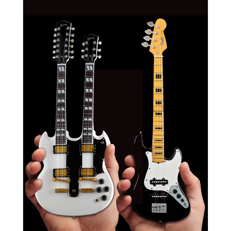 Officially Licensed Set of2 EDS-1275 Doubleneck & Jazz Bass Miniature GuitarsEach model is handcrafted with amazing detail, like the real Guitars.Both models are OFFICIALLY LICENSED BY GIBSON & FENDER.Set of 2includes the following guitars:1 x GG-224 - Gib