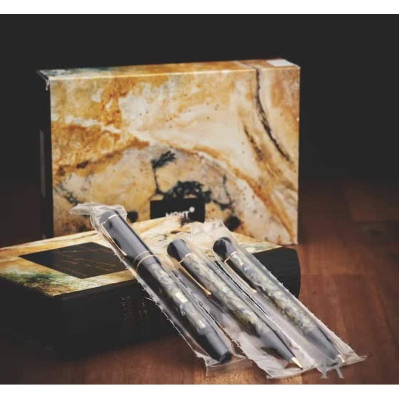 Collection: Oscar Wilde Edition | 1994 Product Type: 3 Piece Set | Fountain pen | Ballpoint pen | Mechanical pencil Item number: 17660 EAN CODE: 4017941176608 Product details Fountain pen Color: Black | Dark green Material: Precious resin Fittings: 925 sil