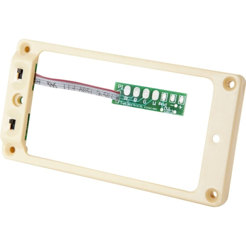 SummaryWiring mods made easy with four different sounds at tips of your fingers. This is the flat Trembucker sized ring in black.Description The Triple Shot switching mounting ring is amazing for a variety of reasons. You get tons of tonal variety from the