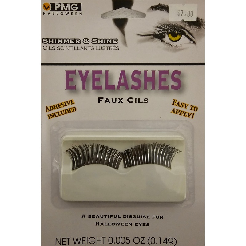 PMG Shimmer & Shine EyelashesIncludes one set of eyelashes & adhesiveNot meant for children under 14 years of ageColors: Black/Gold, Black/Silver, Rainbow, Lime GreenPM6530270