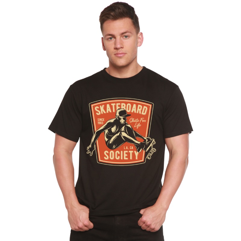 Skateboard Society Men’s Bamboo Viscose/Organic Cotton Short Sleeve Graphic T-Shirt Medium Black