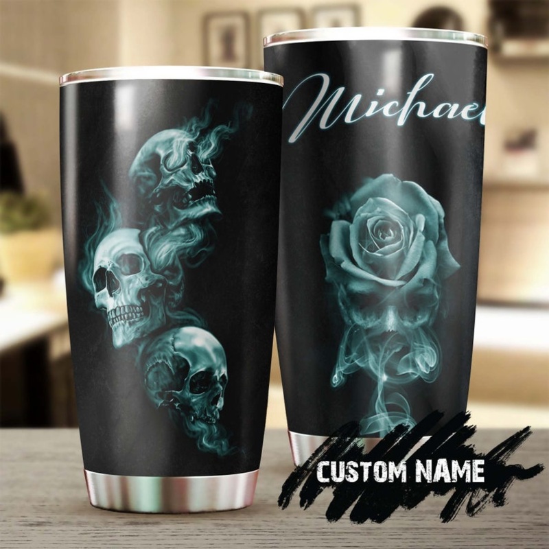 Skull Smoke Rose Personalized Fancy Unique Tumbler-Skull Tumbler-Skull Birthday Gift Christmas gift for her for him