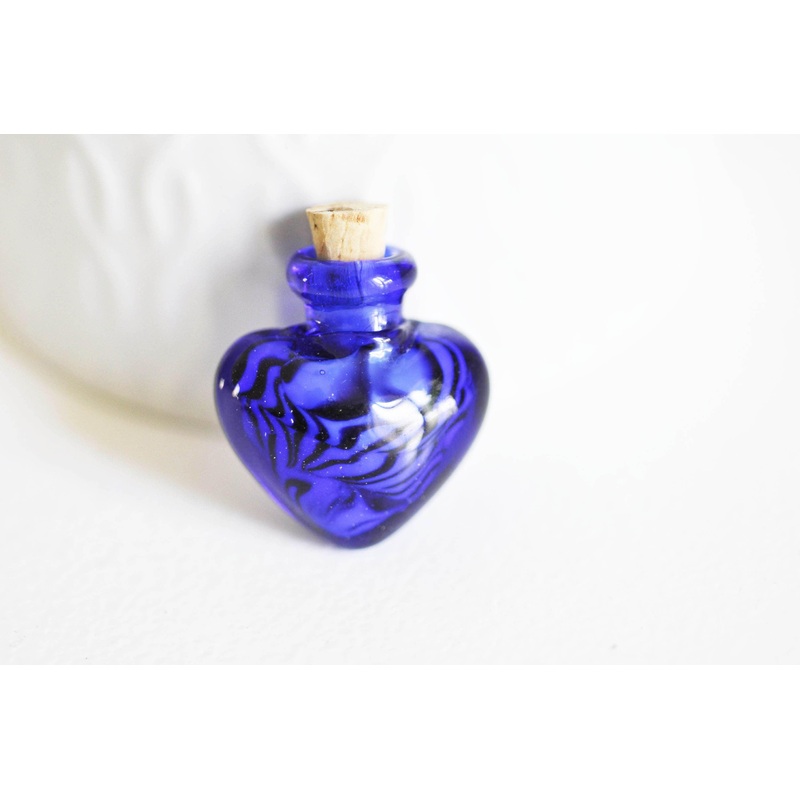 Add a romantic and creative touch to your DIY projects with this small blue heart-shaped glass bottle , equipped with a natural cork stopper . At 32.5mm in size, this delicate bottle is perfect for holding glitter, beads, essential oils or even little secr