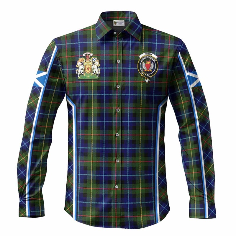 Smith Tartan Crest Long Sleeve Button Shirts Scotland Coat of Arm Flag Style