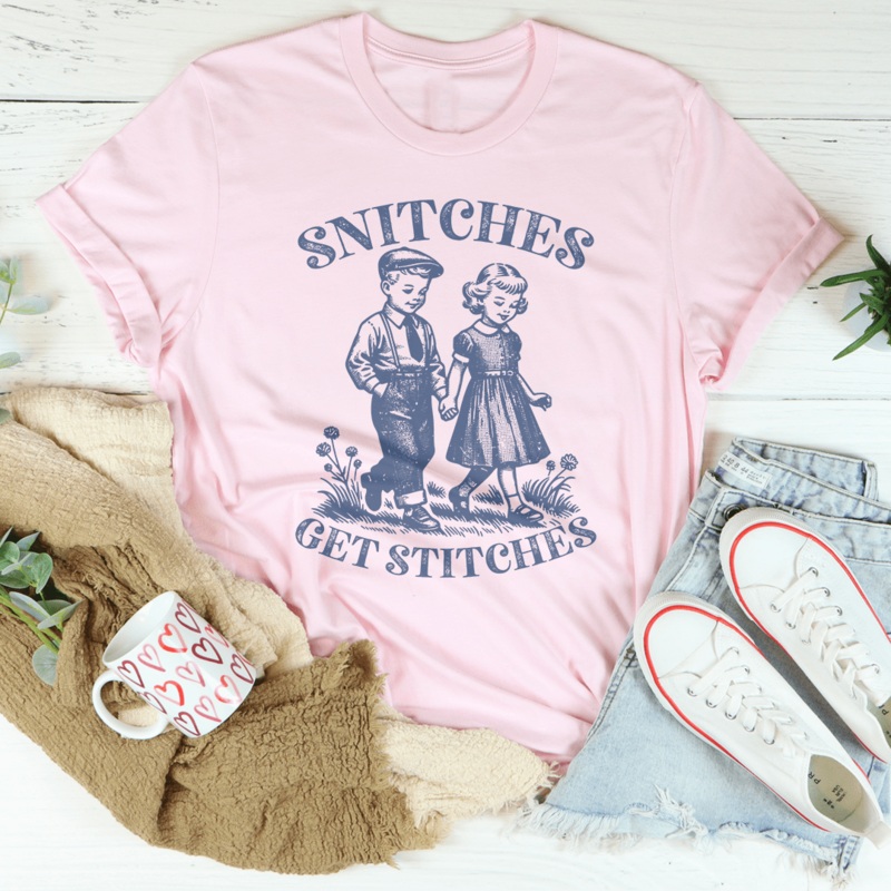 Pair it with jeans or a leather jacket for a look that screams confidence. Perfect for those who walk the talk, our “Snitches Get Stitches” T-shirt is more than just fashionit’s a lifestyle. Wear it proudly, and let your shirt do the talking.