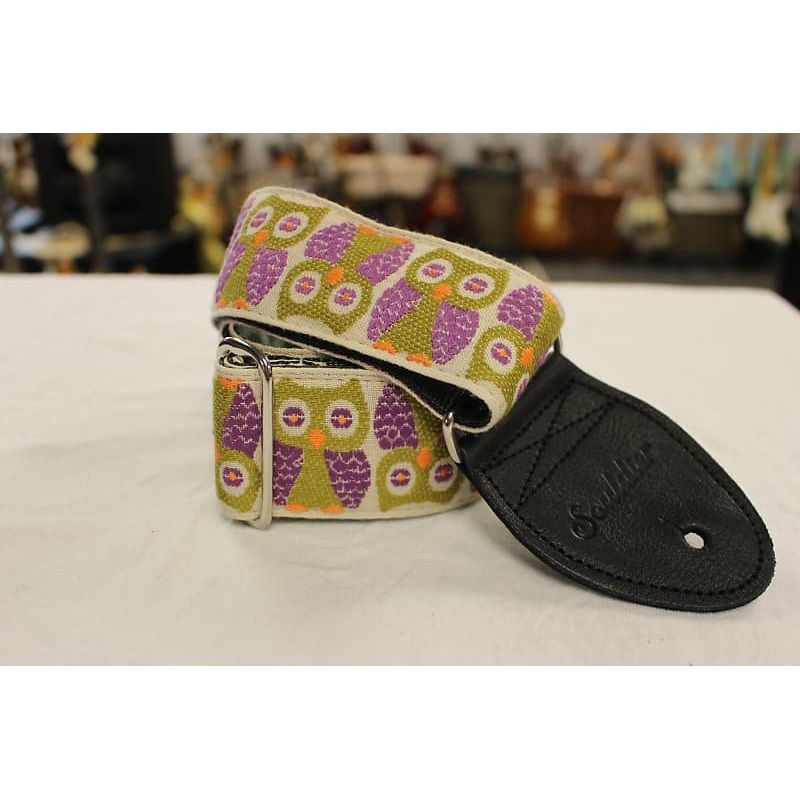 Souldier Guitar Strap Owls Purple w/ Black Leather Ends *Free Shipping in the USA*