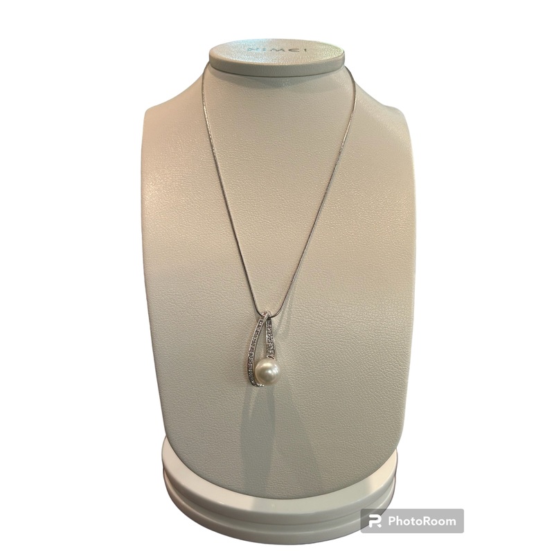 White gold, pearl and diamond necklace