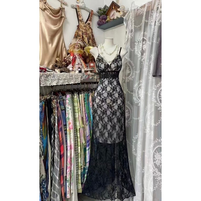 Be the first to review “Spaghetti Straps Black Lace Mermaid Prom Dress Vintage Evening Dress J6568”