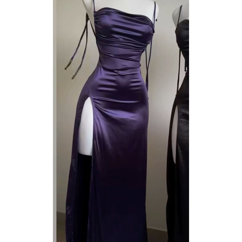 Spaghetti Straps Purple Slit Prom Dress Sheath Evening Dress J6635
