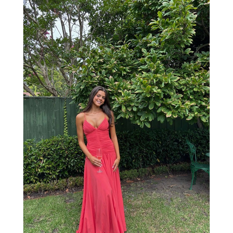 Spaghetti Straps Red Chiffon Prom Dress Wedding Guest Dress J6929