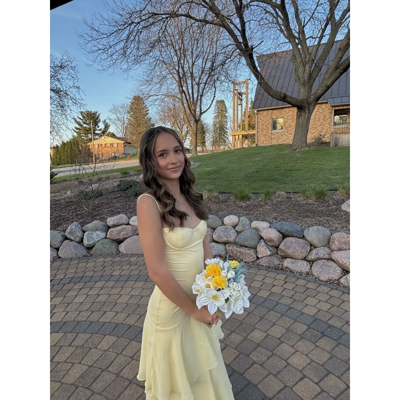 Be the first to review “Spaghetti Straps Yellow Ruffle Prom Dress Wedding Guest Dress J6845”