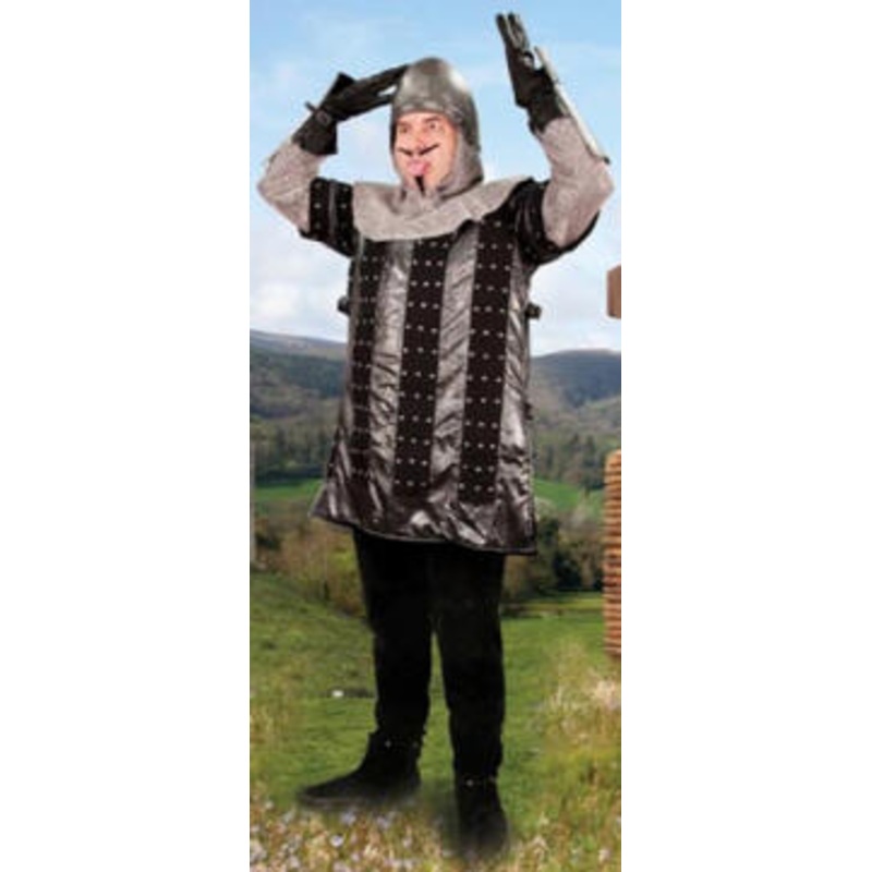 Unless your mother was a hamster and your father smelt of elderberries, you will be needing this costume for all of your taunting pleasures!Includes: The gambeson of this French Taunter costume has an armored look, short sleeves and countless silver studs,