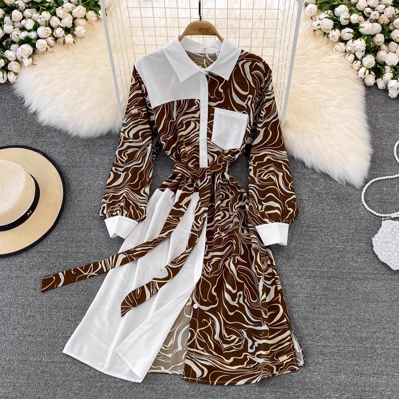 Spring and Autumn Retro Printed Shirt Dress for Women 1420