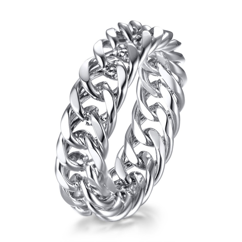 Introducing our stunning stainless steel chain ring, designed specifically for the modern lady who embraces a fashion trend personality. This exquisite piece of jewelry, in a captivating steel color gold finish, is perfect for elevating any outfit, whether