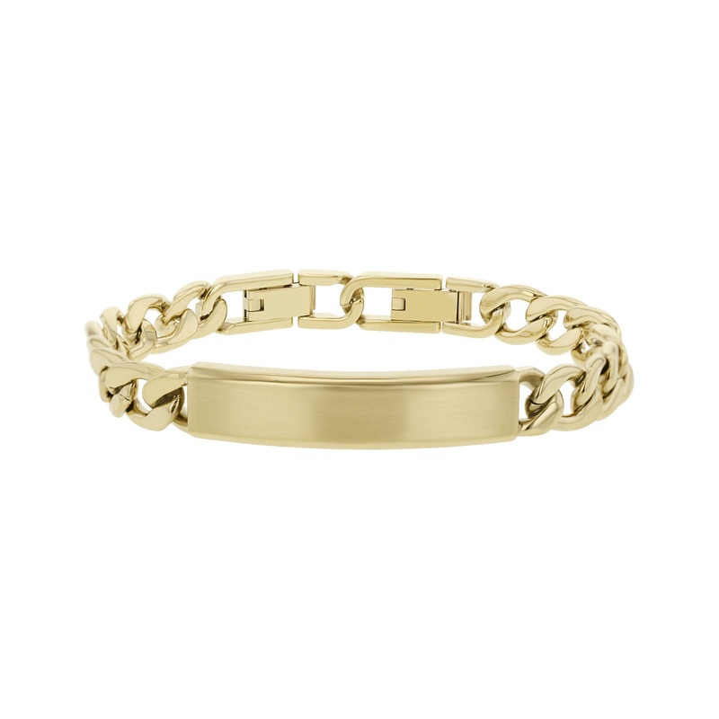 Stainless Steel ID Figaro Link Bracelet Yellow