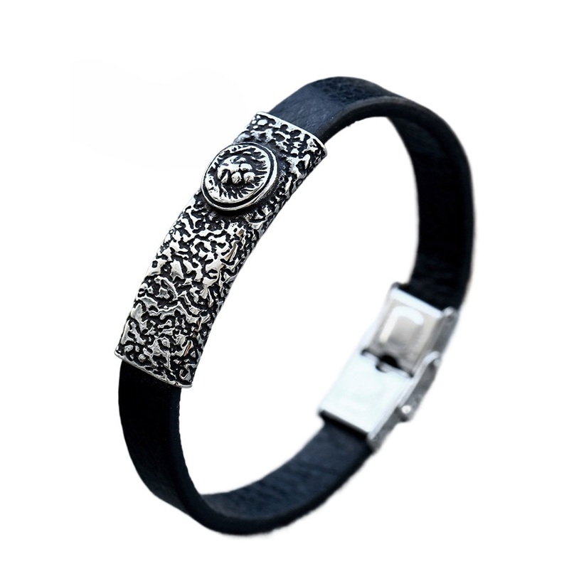 Stainless Steel Lion Head Men’s Bracelet – Retro European & American Leather Fashion Jewelry