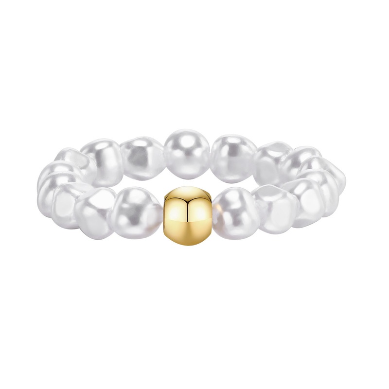 Discover the elegance of the Stainless steel plated 18k gold steel ball irregular imitation pearl ring ins wind sweet wind pearl jewelry jewelry ring. This exquisite piece blends contemporary design with classic charm, making it the perfect accessory for a