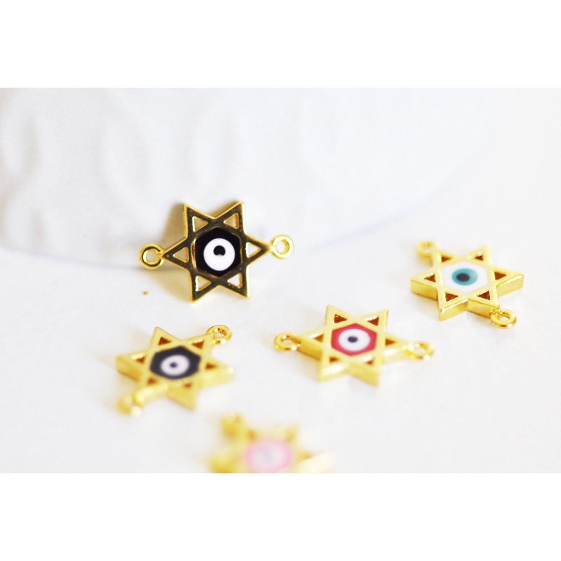 Be the first to review “Star pendant eye crystal zircon colored enamel, golden pendant, lucky charm, golden brass, David star pendant, 16mm, x2 G1817”