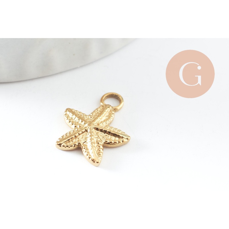 Gold stainless steel starfish pendants bring an oceanic and delicate touch to every look. A sophisticated choice to create unique and quality jewelry. A set of 2 gold-plated steel starfish pendants Length: 15.5mm Width: 20.6mm Thickness: 2.5mm Ring: 0.8mm