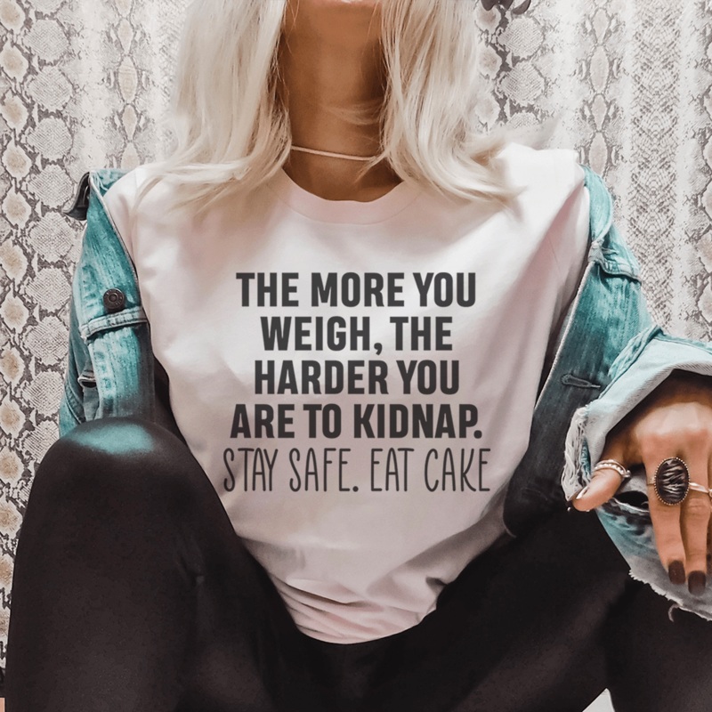 This adorably stylish t-shirt is ideal for spicing up any outfit. Crafted from soft and lightweight fabric with a hint of elasticity, the "Stay Safe Eat Cake Tee" ensures both comfort and a figure-flattering silhouette. This is the perfect item to make a f