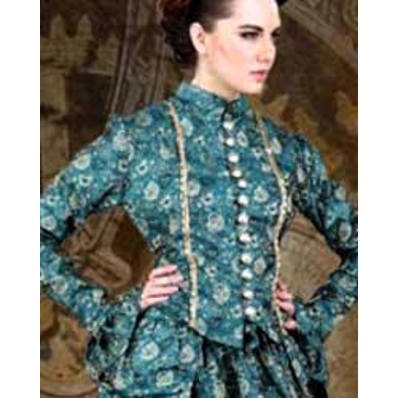 Duchess Judith BlouseSteampunk blouse fit for Aristocracy & Royalty made of rich green Brocade fabric withBlack net lining. Adorned with fitted sleeves,front opening buttons & Victorian cuffs.Goes well with Duchess Judith Skirt (PDC1229B).Color: Green (sho