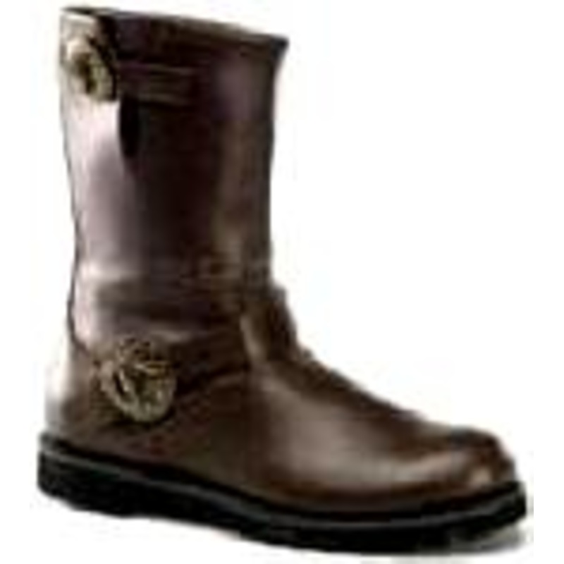 Leather w/Buckles, fabric lining & padded foot insert.Rubber ribbed soles w/ 1.25" heel.Color: Brown (lower) Men's/Unisex Size: 10, 11