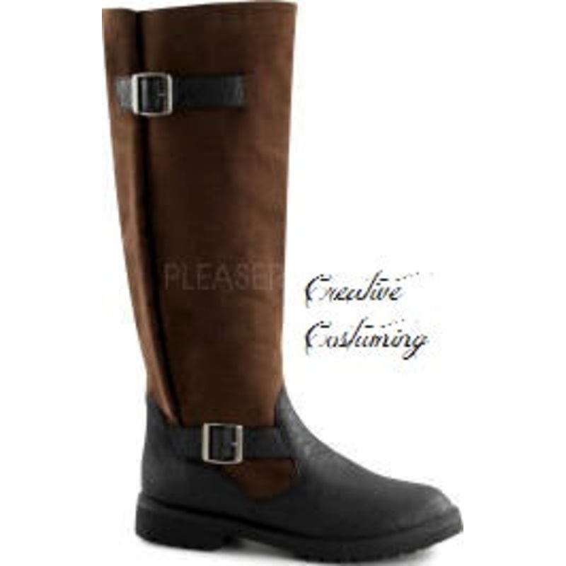 Brown Micro Fiber (Imitation Suede) and Black PU Knee High Pull on Boot with Expandable Shaft, Fabric Lining, Padded Foot Insert, Rubber Sole and 1.5" Heel.Color: Brown/Black (shown)Size: S (8-9), M (10-11), L (12-13), XL (14)PLGotham108