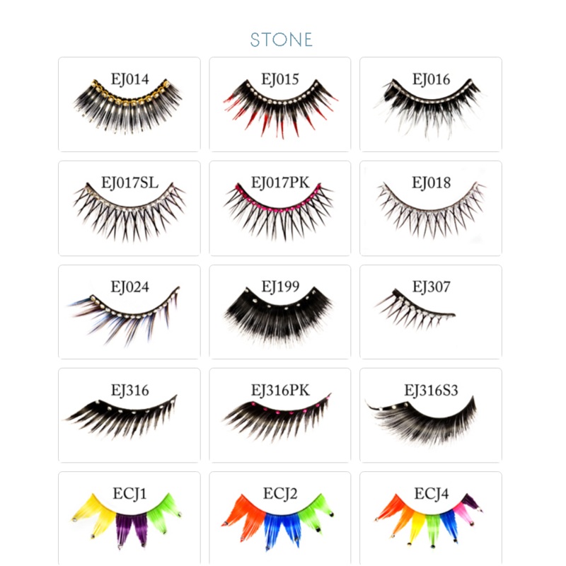 Stone EyelashesEJ014, EJ015, EJ016, EJ017SL, EJ017PK, EJ018, EJ024, EJ199, EJ307, EJ316, EJ316PK, EJ316S3, ECJ1, ECJ2, ECJ4