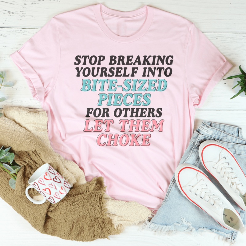 Stand strong and whole with our “Stop Breaking Yourself Into Bite-Sized Pieces” T-shirt. This empowering tee is perfect for anyone who’s committed to self-love and the courage to remain whole in a world that often demands we shrink ourselves. It’s a powerful reminder to maintain your integrity and self-worth.