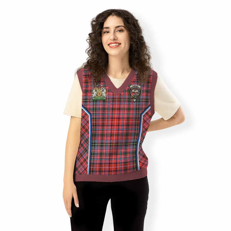 Straiton Tartan Crest Knitted V-Neck Vest Scotland Coat of Arm Flag Style