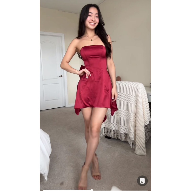 Strapless Burgundy Satin Homecoming Dress Evening Party Dresses J7466