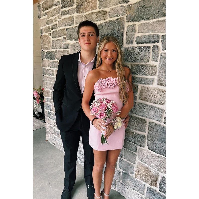 Strapless Pink Short Homecoming Dress With Rosette J7266