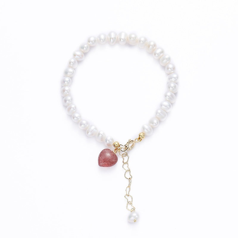 Experience Exquisite Elegance with our Natural Freshwater Pearl Bracelet Indulge in the enchanting allure of our Ins Niche Design Strawberry Crystal Love Bracelet, a perfect gift for your beloved girlfriend. Handcrafted with meticulous attention to detail,