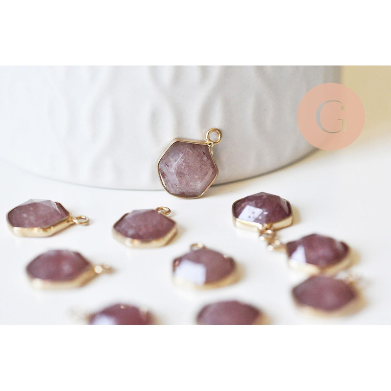 Strawberry quartz hexagon pendant 15mm, stone pendant, necklace pendant, natural stone, quartz pendant, natural quartz, x1 G5629